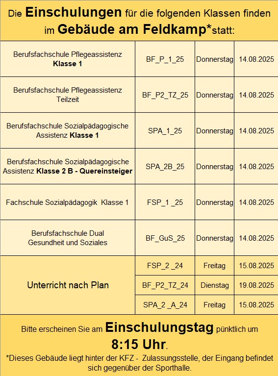 Einschulungstermine Schuljahr 2025 /2026